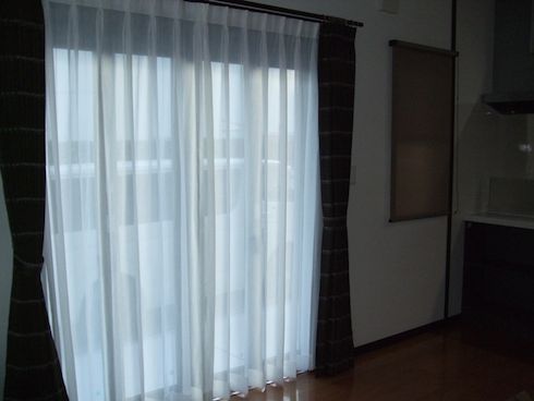 現状のカーテンはそのままで、レースカーテンと窓の間(例えば窓枠の内側に奥行きあれば)に